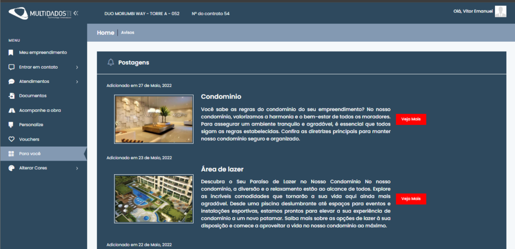 Obs: A foto do empreendimento é o ícone que ficará disponível para visualização do cliente ao acessar o portal de clientes, na parte superior da tela.